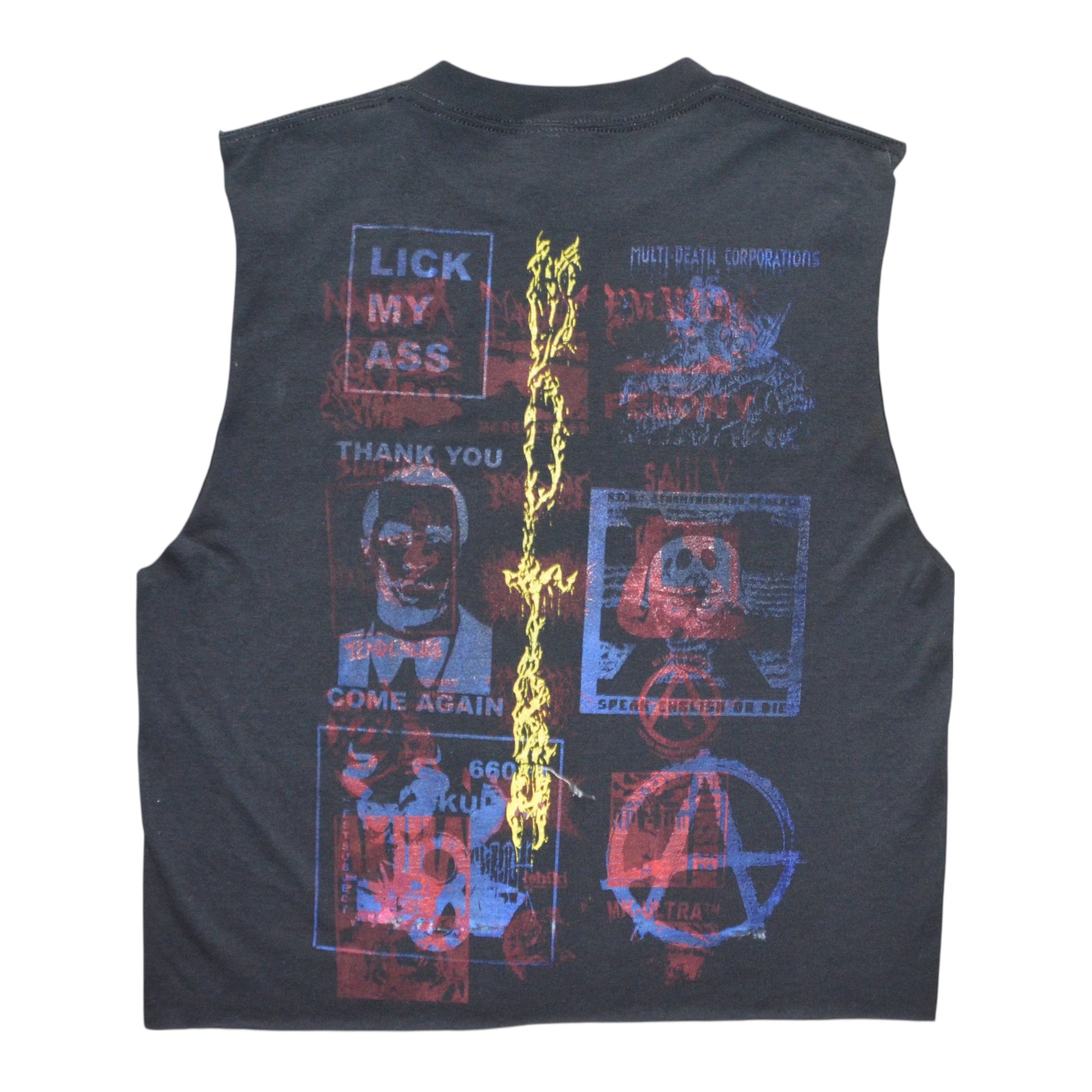 The Bellvue MK-Ultra Muscle Tank is a one of one daring statement piece, boldly adorned with striking prints like MK Ultra, anarchy, and the Multi Death Corporation. Designed to turn heads, this tank fuses rebellious graphics with a sharp, muscular fit, perfect for those who aren't afraid to stand out and challenge the norm. Elevate your streetwear with this fearless expression of punk attitude. this item will not be duplicated. All items are made in Los Angeles.