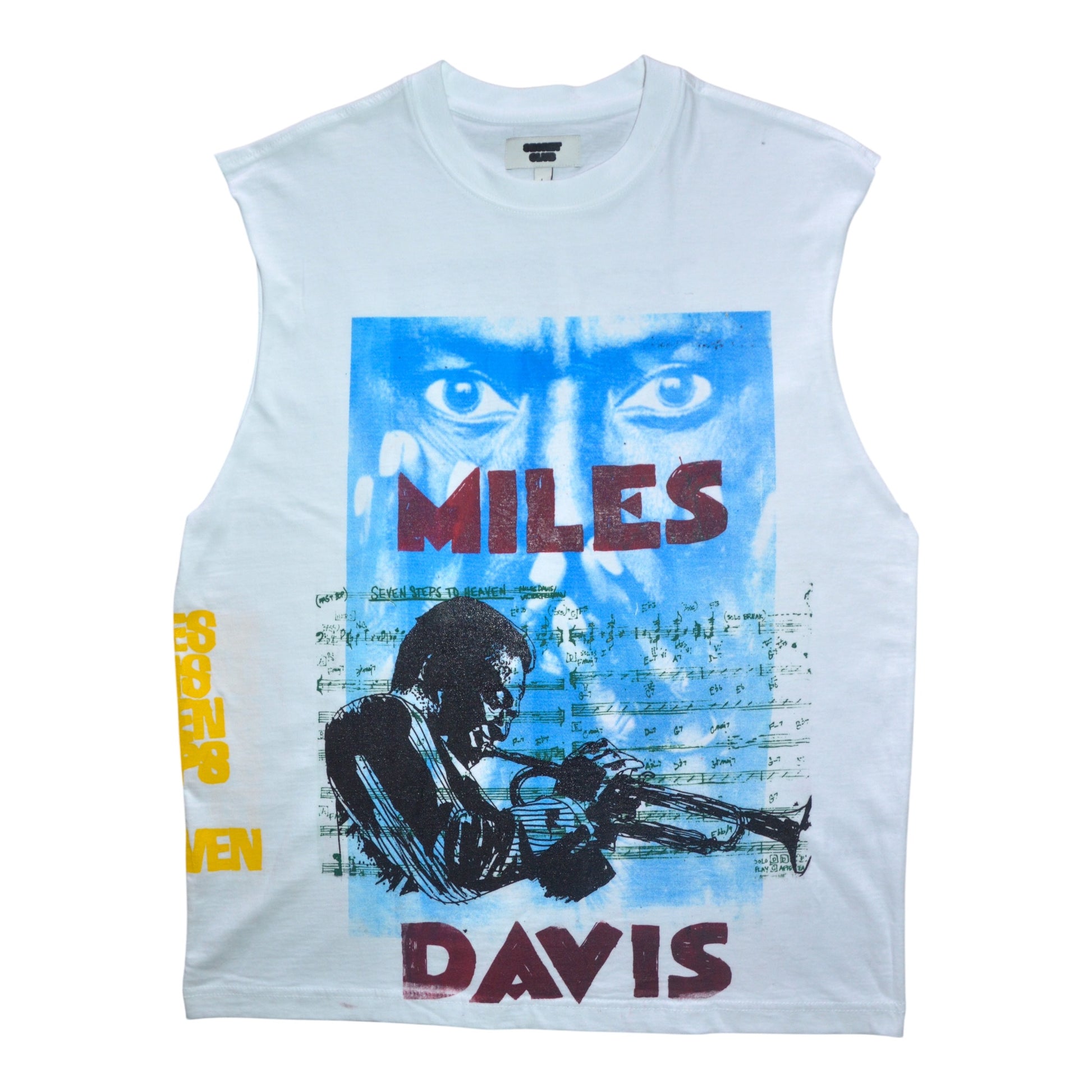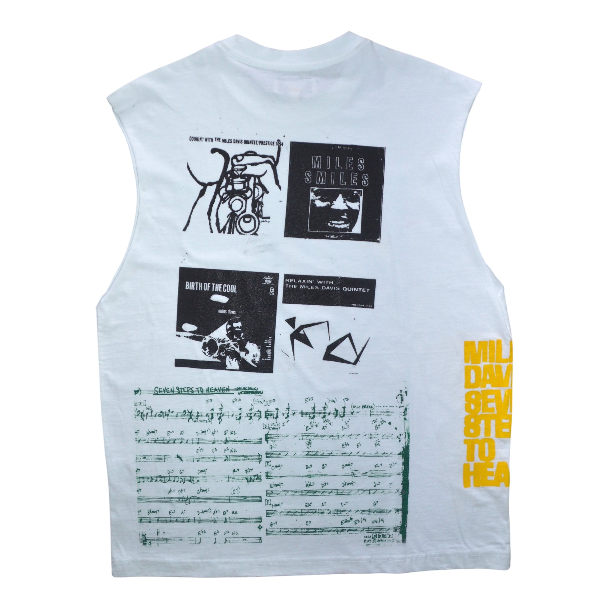 Celebrate the legacy of jazz icon Miles Davis with this multi-colored hand-printed muscle tank. Featuring iconic imagery such as the "Seven Steps to Heaven" charts and "Birth of the Cool" prints, this tank offers a unique fusion of art and music history. Crafted for comfort and style, it’s perfect for fans who want to showcase their appreciation for one of jazz’s greatest legends. Ideal for casual wear or music events, this piece stands out with its vibrant design and cultural significance.