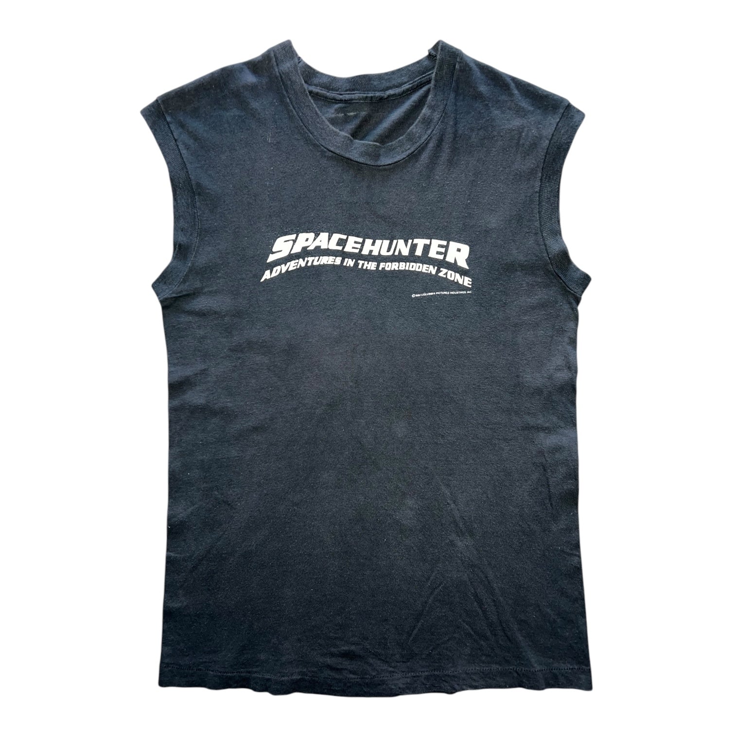 Explore the outer reaches of space with our 1983 Space Hunter sleeveless shirt. Made from high-quality fabric, this vintage shirt features iconic imagery from the American-Canadian sci-fi film. Step into the world of bounty hunting with Peter Strauss and Molly Ringwald, and join the 3-D revival craze of the 80s. Perfect for any sci-fi fan.