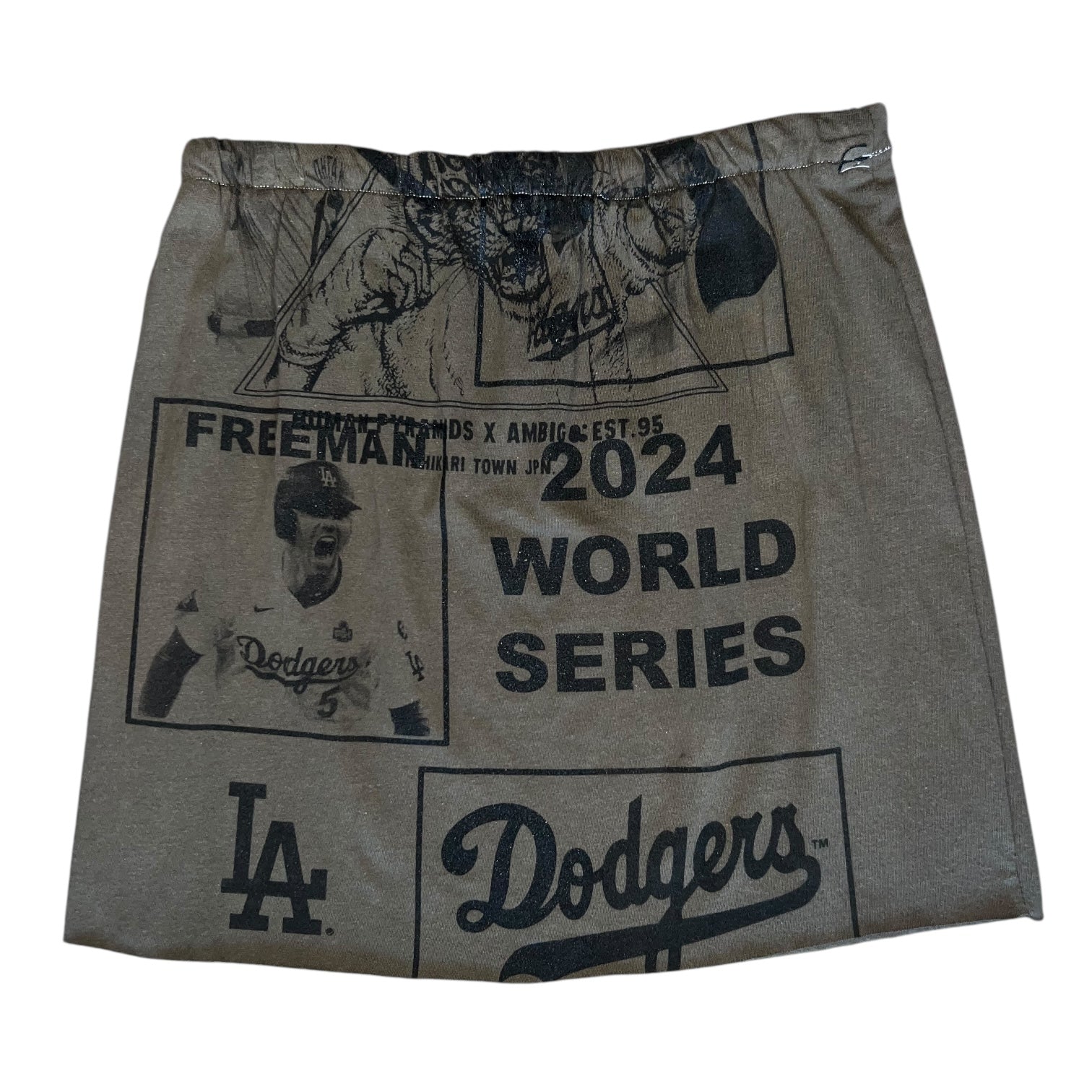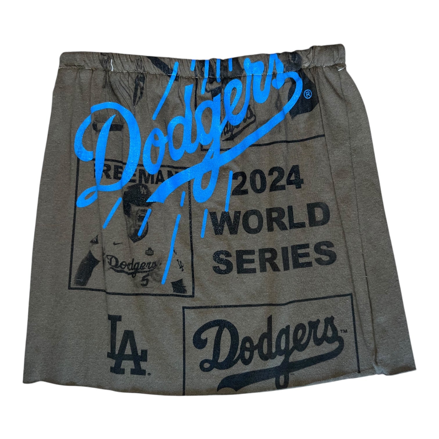 The Dodgers Mini Skirt is a fun, handmade piece with unique dodgers players and team logo, you'll never find another like it! Add a playful twist to your wardrobe while showing off your team spirit in style.