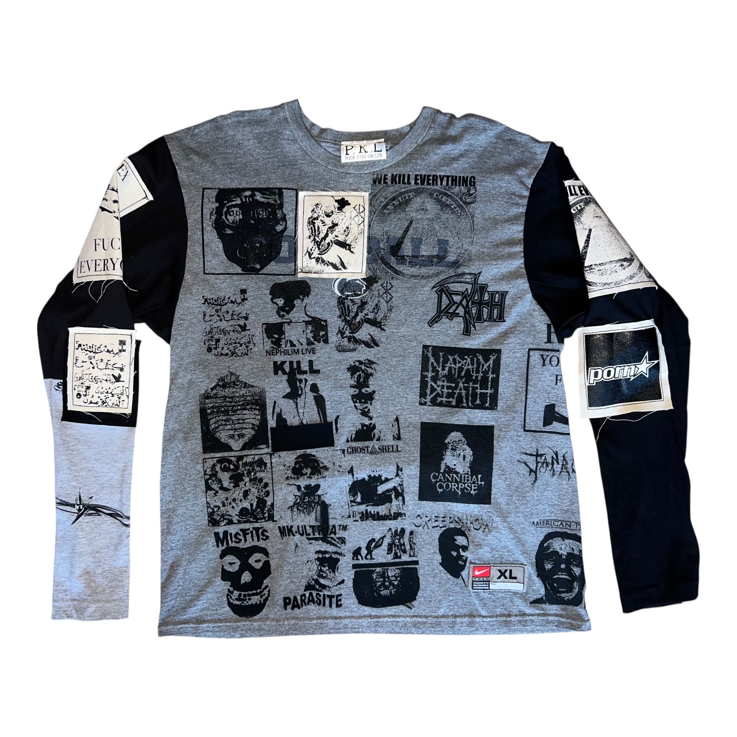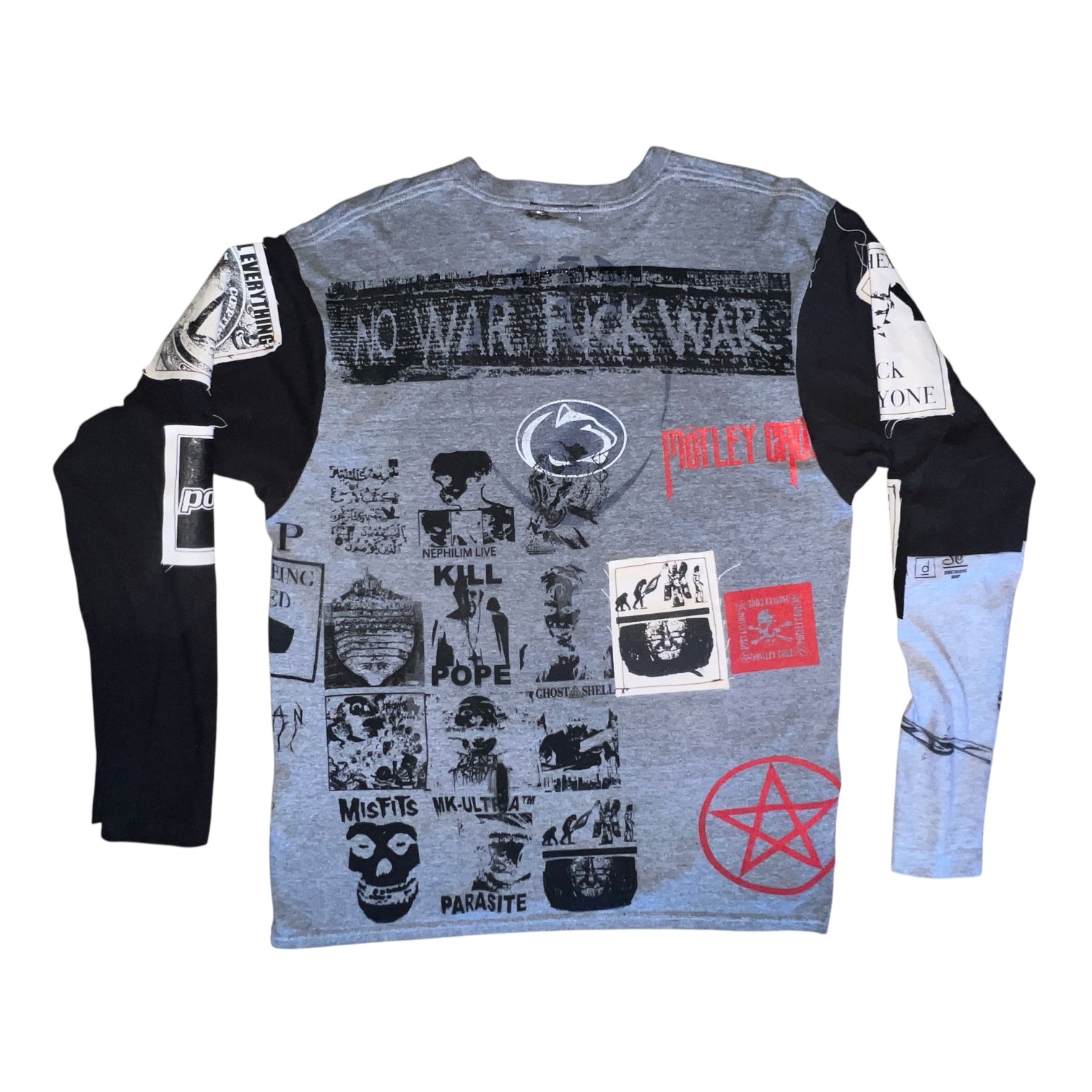 Make a statement with this one of a kind PKL Hollywood Punk long sleeve custom shirt, handmade with patches and prints all over. Every detail is crafted for individuality blending bold streetwear energy with a raw, alternative edge. Designed to stand out, this shirt is perfect for festivals, shows, or everyday wear when you want your style to speak louder than words.