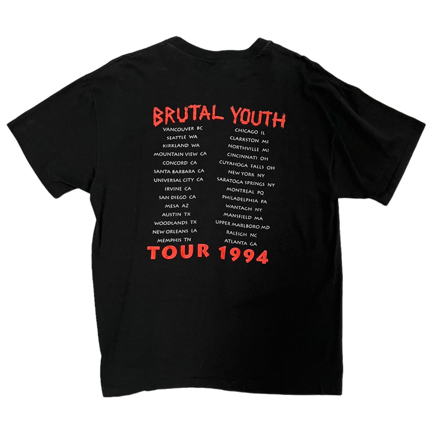 Original 1994 Elvis Costello “Brutal Youth tour” vintage tee, front and back graphic. This is a true vintage shirt, not a reproduction. Please use measurements for best idea on fit. Please be aware that all vintage items will usually show a few signs of wear or fading due to age.