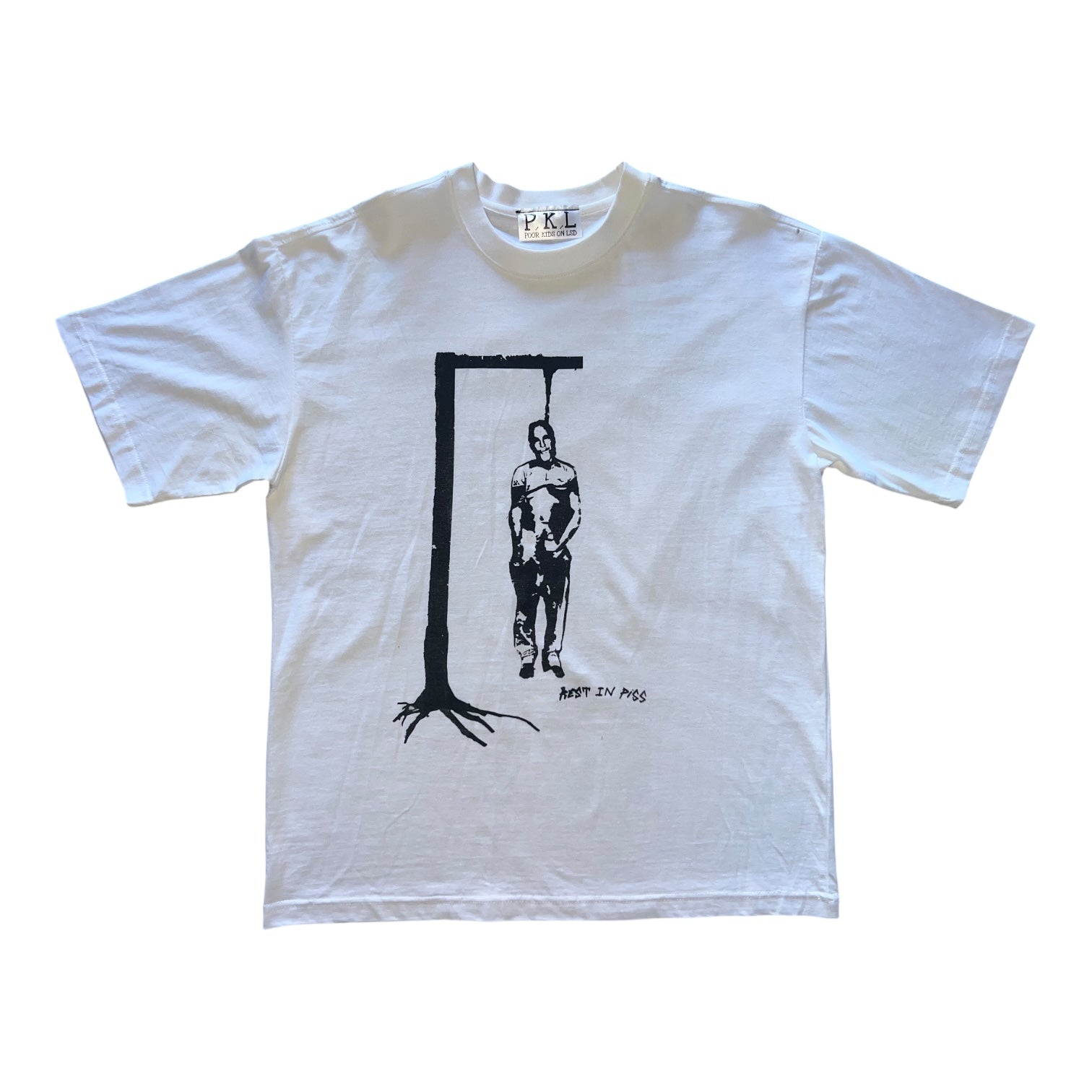 Boldly express your statement with the handmade P.K.L Epstein Island Tee, featuring Epstein alongside the provocative words "rest in piss." on the front and the island on the back along with the list of visitors. Available in all sizes from L to XXL, each shirt is made to order—allow three days for processing. Stand out with this daring design.