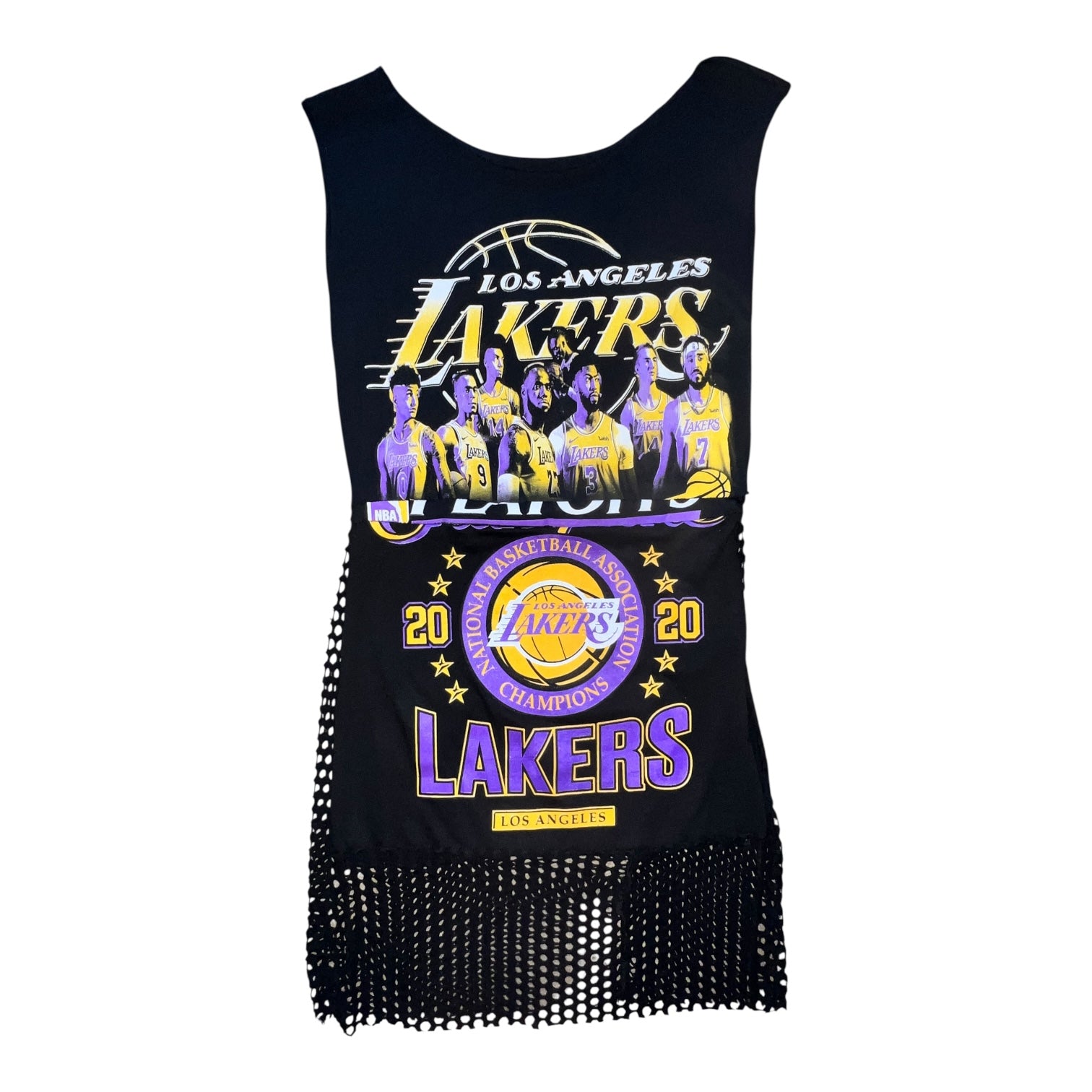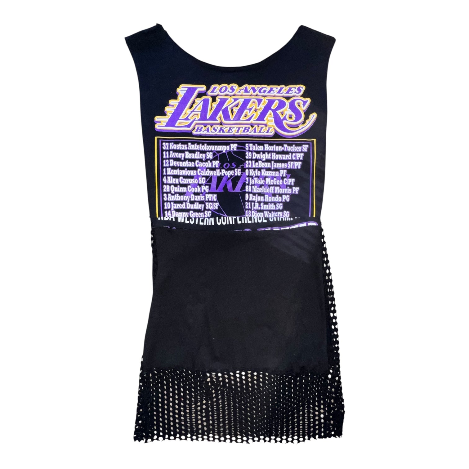 This handcrafted Lakers sleveless dress features a daring mid thigh length with a unique mesh detail at the bottom. Each piece is meticulously made in Los Angeles, ensuring this exclusive one of a kind design won’t be replicated.